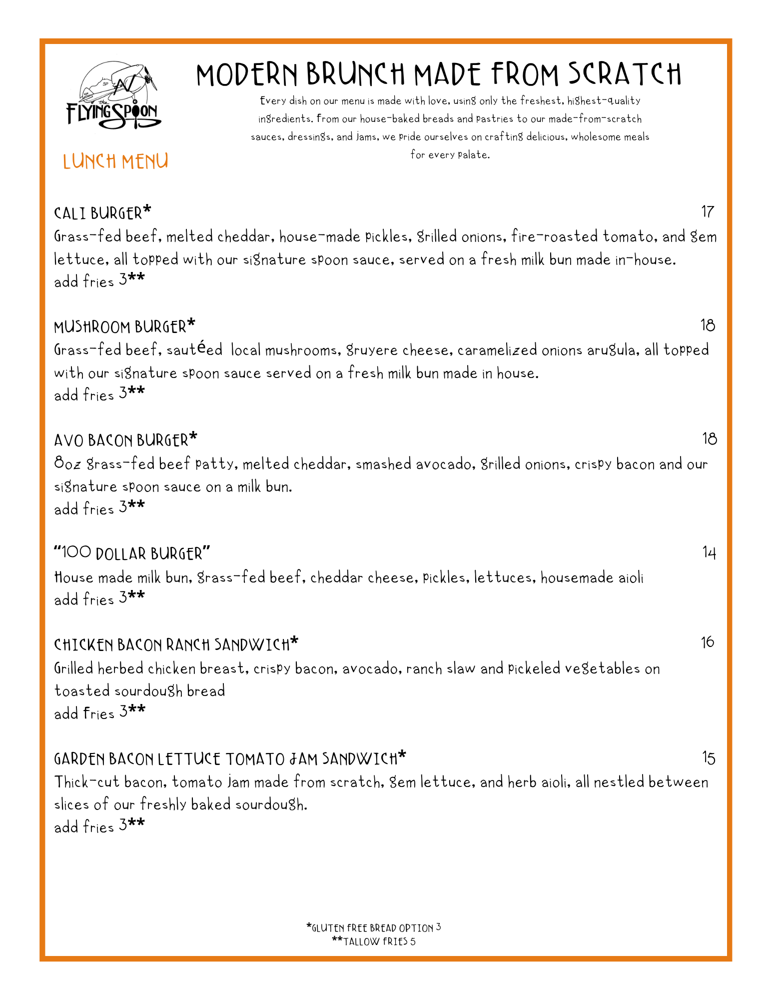 Every dish on our menu is made with love, using only the freshest, highest-quality ingredients. From our house-baked breads and pastries to our made-from-scratch sauces, dressings, and jams, we pride ourselves on crafting delicious, wholesome meals for every palate.